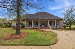 WATERFRONT! Exceptional custom-built lakefront home in Reunion offering timeless character, thoughtful design, and breathtaking views. This 6-bedroom, 5-bath residence features 3 bedrooms and 3 baths on the main level, with 3 additional bedrooms and 2 baths upstairs. Every room down opens to the front or back porches, leading to an expansive 80' rear porch overlooking the lake. A grand central hall spans the length of the home, showcasing newly redone hardwood floors and a formal dining area. The dramatic foyer features a 22' ceiling, with 10' ceilings on the main level and 9' ceilings upstairs. An open staircase leads to a second-floor landing with bedrooms and baths on either side. Custom architectural details include transom doors and windows, double doors, and pine ceilings. The gourmet kitchen is designed for entertaining with custom cabinetry, ceilings with exposed beams, travertine floors, granite island, Caesarstone countertops, wet bar with filtered water system and ice maker, Wolf stainless appliances, and a Sub-Zero refrigerator. The adjoining living room features a gas fireplace with granite surround. The primary suite offers floor-to-ceiling windows with stunning lake views, his and hers closets with built-in storage, and a spa-like bath with custom tile shower, air jet tub, and dual granite vanities. A front bedroom (or office) features a large built-in closet and bath with travertine floors, marble countertops, and tiled shower. A third downstairs bedroom includes pine ceilings, a custom entertainment center, walk-in closet with built-ins, and direct bath access. An additional stairway off the kitchen leads to a versatile large sixth bedroom or bonus room with tons of storage and access to a bathroom. Upstairs also includes a temperature-controlled storage room with built-in shelving and cedar closet. Exterior additional features include an irrigation system, security/internet/cable wiring, extra wide beadboard finished garage with two storage rooms, guest parking, separate golf cart garage with outdoor grilling area, gas fire pit, and a pier. A rare opportunity to own a truly distinctive lakefront home!