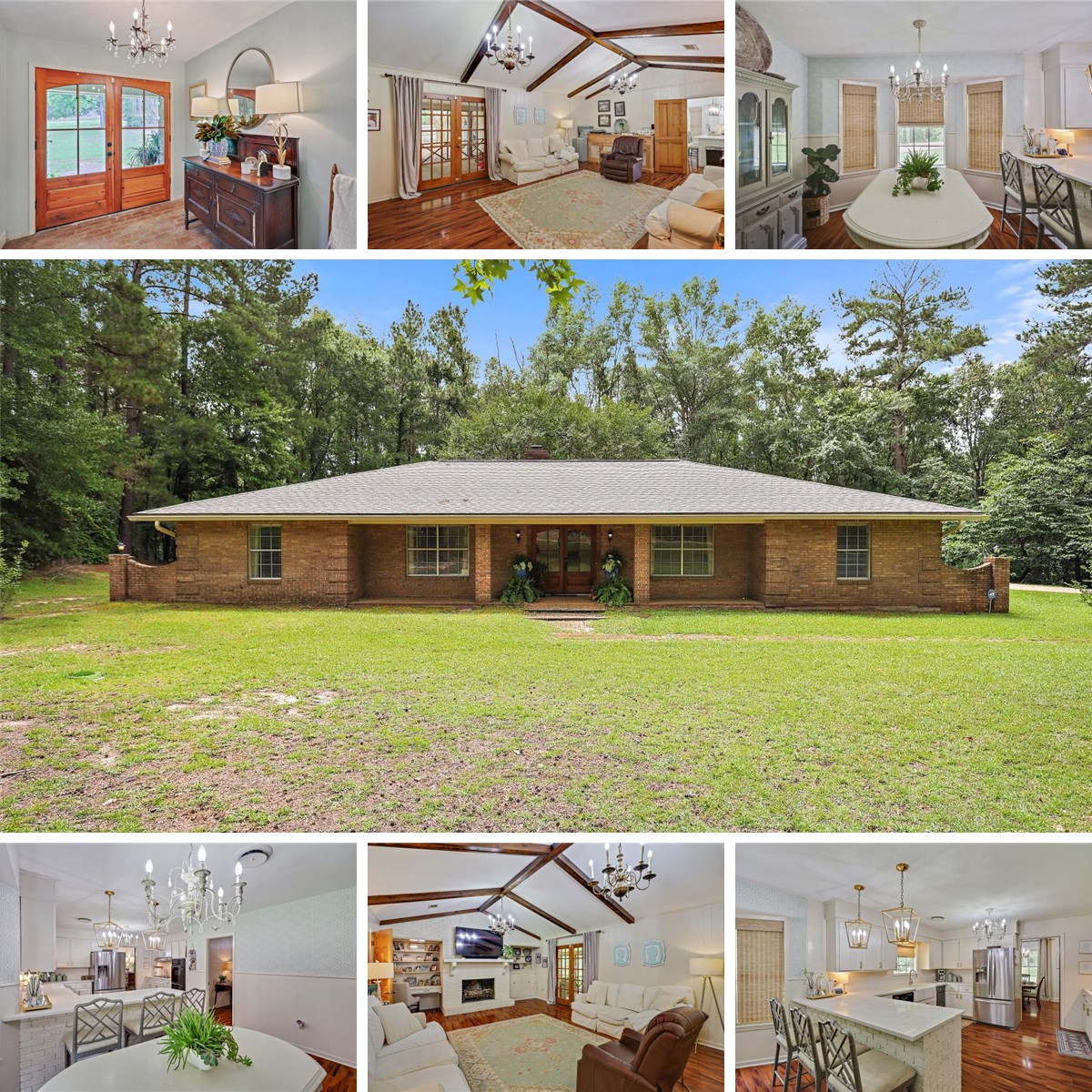 BRAND NEW HVAC SYSTEM INSTALLED!!! Nestled on a serene two-acre lot with convenient access to Highway 49, this stunning four-bedroom, two-and-a-half-bath home offers a perfect blend of modern elegance and comfortable living. The recently renovated kitchen is a chef's dream, featuring quartz countertops, gold accents, bricked accents at the eat in bar, and a spacious pantry area with room for a freezer. Adjacent to the kitchen, you'll find a formal dining room, as well as a breakfast area, and an eat-in bar, providing plenty of space for dining and entertaining. The living area boasts a vaulted ceiling with beam accents and a cozy wood burning fireplace, creating a warm and inviting ambiance.
