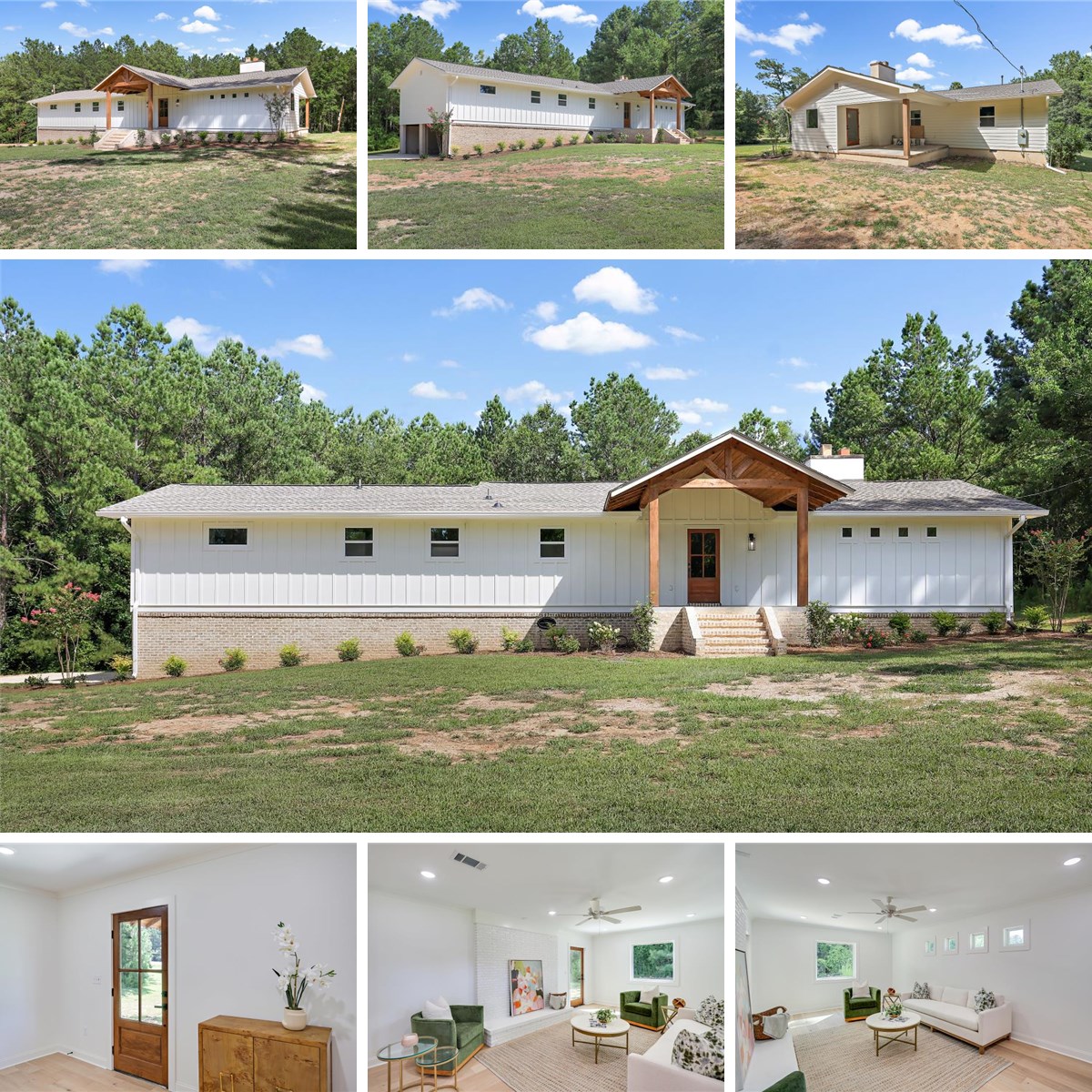 When you walk through the front door, you'll be greeted by a spacious living room featuring a cozy fireplace, which flows seamlessly into a lovely dining area and an open, modern kitchen. The kitchen is a chef's delight, complete with a large island that includes a sink, granite countertops, custom-built cabinets, and a wall oven. Adjacent to the kitchen is a charming breakfast room, perfect for casual dining. You'll also appreciate the convenience of a large mudroom and a spacious laundry room with built-in storage. The primary suite is generously sized, offering a luxurious retreat with a huge walk-in closet, double vanities, a custom-tiled walk-in shower, and a soaking tub. The master closet even connects directly to the laundry room for added convenience. The home includes three additional guest bedrooms. Two of these bedrooms are spacious and share a hall bath with a large vanity and a tub-shower combo. The third guest room serves as a true guest suite, complete with its own private en suite bath and a spacious closet. Outside, you'll find a covered porch perfect for relaxing evenings, as well as a patio area ideal for enjoying sunny days. Situated on a 3.6-acre corner lot, this home is essentially brand new with all new systems and finishes, ready for its new owners to move in and enjoy!